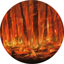 Dez peças marcam um ciclo-círculo cronológico, de morte e renascimento: seis desenhos traçados com o carvão que remanesceu das árvores destruídas; três pinturas a óleo; um objeto com carga conceptual/simbólica. A exposição integra ainda uma peça de vídeo experimental dedicada à mesma temática, realizada pela artista e filmada nos locais onde o carvão foi recolhido. Ana Patrícia Coimbra de Matos (Tondela, 1985) é artista plástica dedicada à pintura e à videoarte, premiada nesta última área. Licenciada pela Faculdade de Belas Artes da Universidade do Porto (Ramo de Pintura), conta ainda com um background académico e profissional na Engenharia Biomédica, que optou por descontinuar em 2011 em prol de uma aposta integral nas artes plásticas. Exerce desde 2016 uma atividade artística independente a full time.
